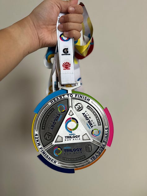 More importantly, this race was the final leg of a 3-part series. Completing it meant completing the big medal. And yes, the medal was (super!) cool, what really mattered was finishing what I started.